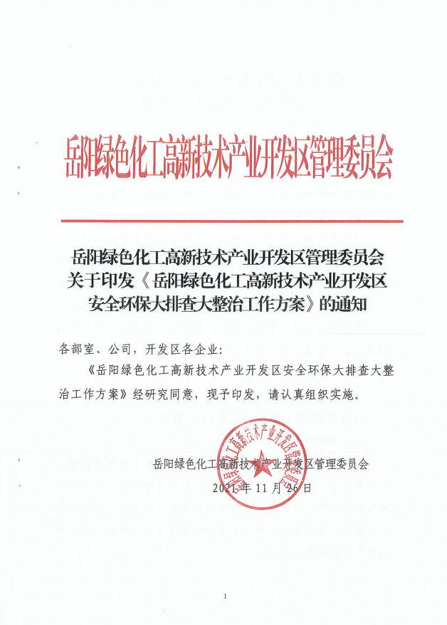 下一篇:湖南岳陽綠色化工產(chǎn)業(yè)園管理委員會關(guān)于印發(fā)《歲末年初安全生產(chǎn)百日大會戰(zhàn)工作通知》的方案
