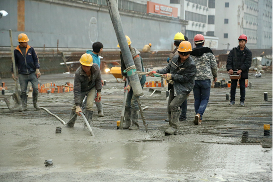 在一邊進(jìn)行正泵一反泵操作,一邊讓其他人員沿著輸送管路尋找堵塞部位時,可以用木錘敲打被認(rèn)為是堵塞的部位,有時能使堵塞的骨料瓦解而恢復(fù)暢通,若敲打無效,不準(zhǔn)用鐵錘或其它可能傷害管道的物件重?fù)?。如堵管部位判斷?zhǔn)確,只要把堵塞段管件拆下,消除其中已堵塞的混凝土,再裝回去,即可繼續(xù)泵送。如果堵管部位離泵機(jī)較近,堵塞段被清理后回裝到管路,由于這段空管的氣塞作用,也會再次造成堵管。在這種情況下,應(yīng)將堵塞段以后的管道混凝土用氣洗或水洗清除,再接管泵送。管線較長時,可分段拆洗。