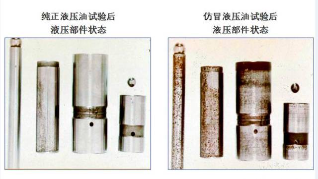 純正液壓油對(duì)液壓部件起到抗氧化,防銹等作用,因此除了通過油色、粘稠度、耐高溫性特點(diǎn)辨別真?zhèn)危部梢钥匆簤河偷目寡趸员鎰e。