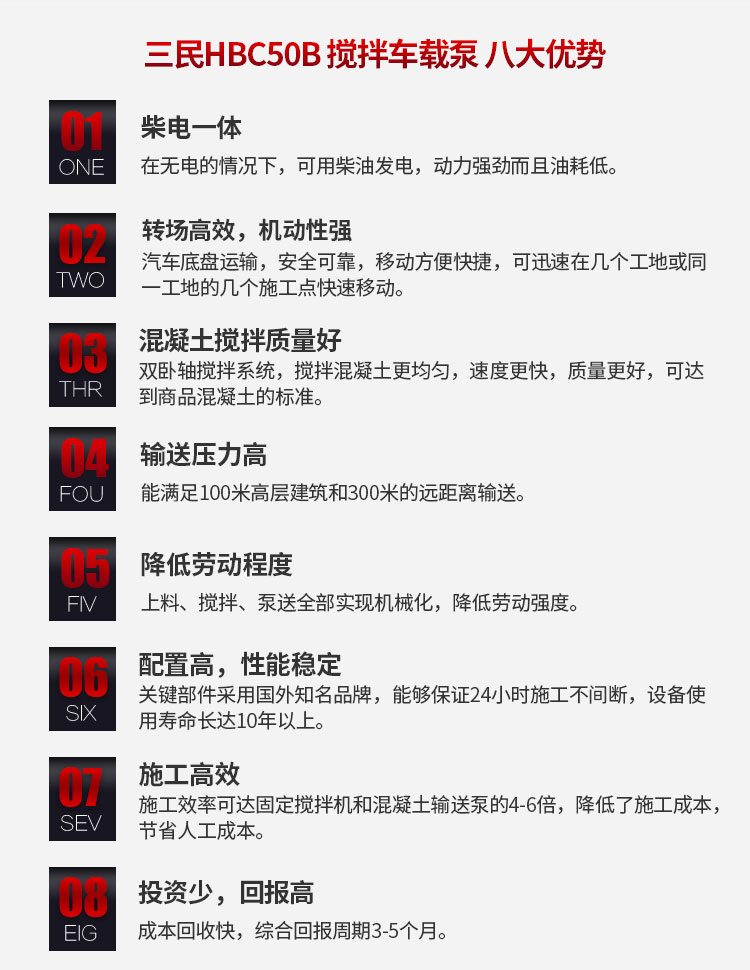 以下是三民HBC50B攪拌車載泵的八大優(yōu)勢: