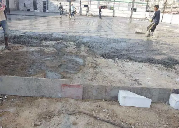 工藝流程:基層清理→彈標(biāo)高控制線→找標(biāo)高沖筋貼灰餅→鋪設(shè)混凝土并振搗→木抹子搓平→抹面層→養(yǎng)護(hù)