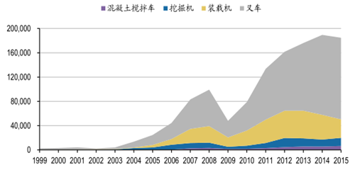 中國(guó)工程機(jī)械出口主要產(chǎn)品銷量(臺(tái))