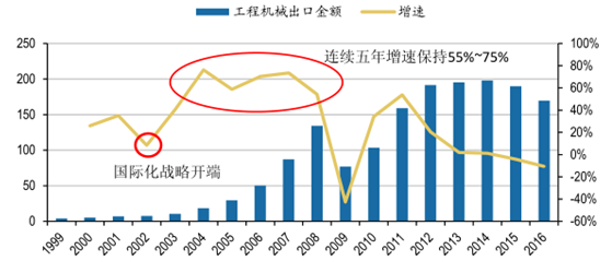二十世紀(jì)九十年代,我國(guó)工程機(jī)械開始出口,彼時(shí)工程機(jī)械技術(shù)水平較國(guó)際水平差距較大,加之銷售渠道少,出口量極少。進(jìn)入二十一世紀(jì),國(guó)內(nèi)各大工程機(jī)械企業(yè),都開始將國(guó)際化作為公司的核心戰(zhàn)略之一,中國(guó)工程機(jī)械企業(yè)的國(guó)際化之路就此開始。