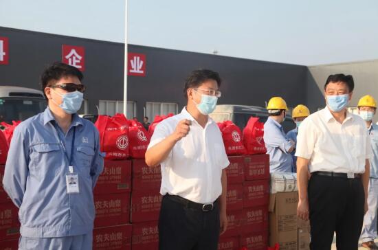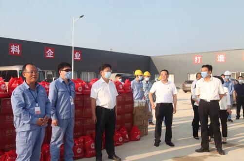 陳愛林、彭先政聽取了項(xiàng)目施工負(fù)責(zé)人的情況介紹,為高溫下的建設(shè)者送上防暑降溫的物資和藥品。