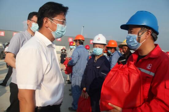 7月30日,岳陽市委副書記陳愛林,市人大常委會(huì)黨組副書記、副主任、市總工會(huì)主席彭先政等領(lǐng)導(dǎo)一行到公司己內(nèi)酰胺產(chǎn)業(yè)鏈搬遷與升級(jí)轉(zhuǎn)型發(fā)展項(xiàng)目建設(shè)工地開展“夏送清涼”慰問活動(dòng),向奮戰(zhàn)在高溫一線的建設(shè)者表示誠摯的問候并送去一份關(guān)愛。公司副總經(jīng)理彭鴿威,公司有關(guān)部門負(fù)責(zé)人參加當(dāng)天的慰問。