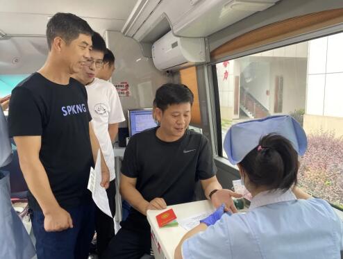 從上午七點(diǎn)半開始前來獻(xiàn)血的干部職工絡(luò)繹不絕檢測點(diǎn)外排起了長隊(duì)