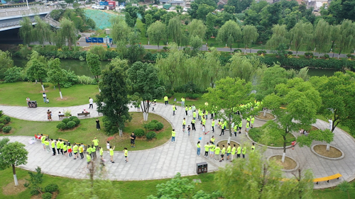 在長約10公里的健步道上,大家分成五組,統(tǒng)一著裝,精神抖擻,信步走在美麗的王家河大道上。一路上,大家相互間交流感情,氣氛融洽。在王家河小島上的游戲環(huán)節(jié),將活動掀起了高潮。每個小組的口號精彩紛呈,響徹兩岸?!皵?shù)字傳遞游戲”更是笑聲一片,掌聲陣陣。