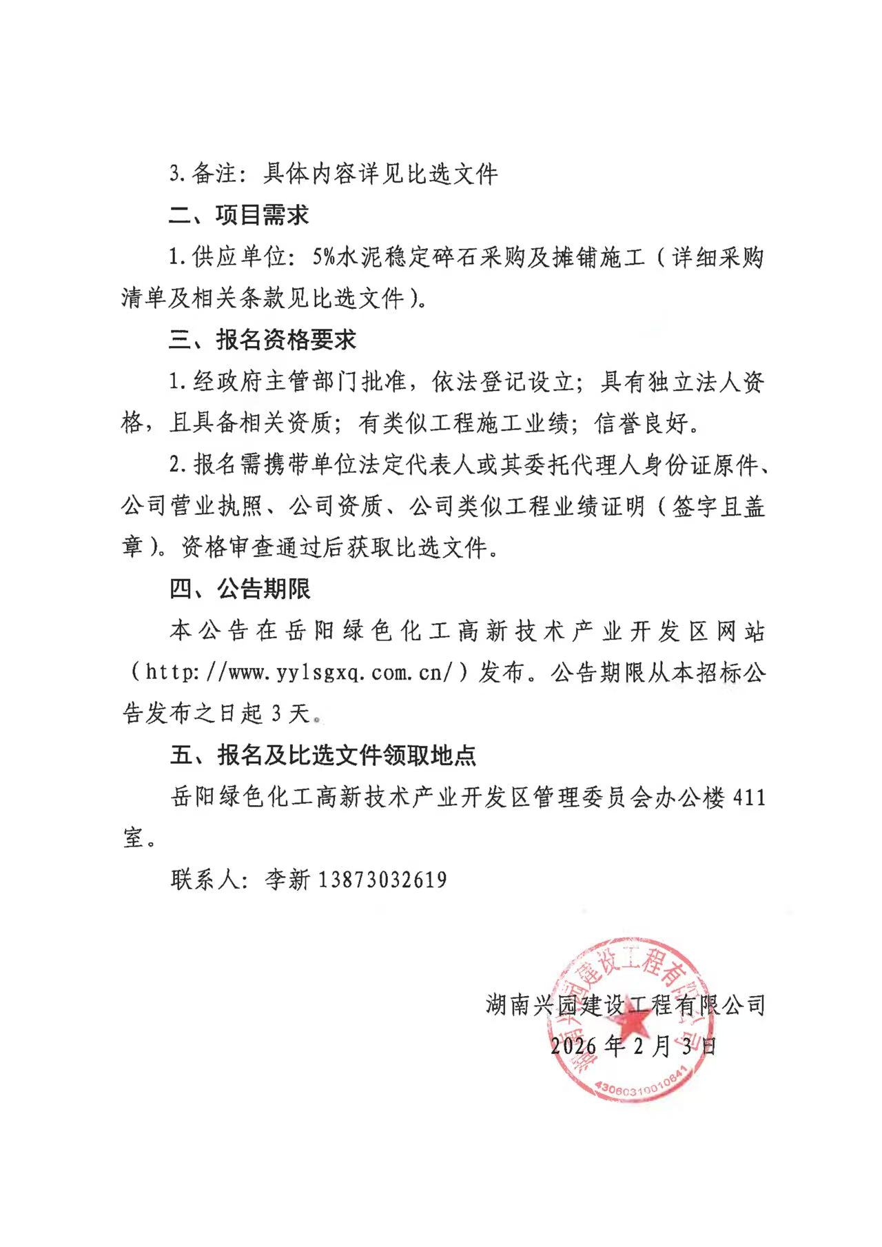 下一篇:湖南岳陽綠色化工高新技術(shù)產(chǎn)業(yè)開發(fā)區(qū)工業(yè)配套項目東側(cè)道路工程比選公告