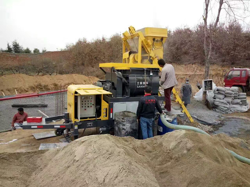 1.檢查各部螺栓應(yīng)緊固,管道接頭應(yīng)緊固密封,防護(hù)裝置應(yīng)齊全可靠,輪胎應(yīng)楔緊。 2.所有控制開(kāi)關(guān)均應(yīng)放在中位(或切斷位置)。 3.檢查液壓油箱的油量不足時(shí),應(yīng)加注同型號(hào)液壓油。檢查液壓系統(tǒng)應(yīng)正常無(wú)泄漏。 4.檢查電源、水源和安全裝置是否已按原廠說(shuō)明書(shū)要求正確連接。 5.檢查活塞桿冷卻潤(rùn)滑密封室的冷卻水面,水量不足應(yīng)加滿;水不清潔應(yīng)更換,并檢查混凝土活塞是否已損壞。 6.向各潤(rùn)滑點(diǎn)加注潤(rùn)滑油(脂)。每個(gè)臺(tái)班各潤(rùn)滑點(diǎn)必須潤(rùn)滑一次。 7.?dāng)嚢瓒穬?nèi)應(yīng)無(wú)雜物,上方的保護(hù)格網(wǎng)應(yīng)蓋嚴(yán)。 8.檢查輸送管道的磨損程度,管壁壁厚不能小于3mm。管道接頭、密封圈及彎頭應(yīng)定期更換。天氣炎熱時(shí)應(yīng)用濕麻袋、濕草包等遮蓋管路。 9.準(zhǔn)備好清洗管、清洗用品、接球器及有關(guān)裝置。作業(yè)前,必須先用按規(guī)定配制的水泥砂漿潤(rùn)滑管道。無(wú)關(guān)人員必須離開(kāi)管道。 混凝土輸送泵的調(diào)試技術(shù)介紹 (1)泵機(jī)安裝就位后,應(yīng)先對(duì)泵機(jī)進(jìn)行整體檢查,檢查內(nèi)容包括:油箱內(nèi)的液位是否在規(guī)定的范圍內(nèi),液壓膠管接頭、管夾固定座等連接件是否松動(dòng),有無(wú)漏油的地方,電器元件的連線是否斷線或脫線,觸頭螺釘是否松動(dòng),料斗內(nèi)是否有異物或雜質(zhì)。 (2)電器方面的檢查。首先,應(yīng)檢查現(xiàn)場(chǎng)電壓是否為(380±10%)V,泵機(jī)須設(shè)置一個(gè)專(zhuān)用控制開(kāi)關(guān),所用電纜線的規(guī)格與泵機(jī)上的主電纜線須一致,并按要求接好地線。然后做到下列檢查: A、合上控制線路開(kāi)關(guān),電源指示燈亮,同時(shí)可編程序控制器PLC模塊得電,此時(shí)觀察模塊上的指示燈(分別為啟動(dòng)、運(yùn)行和故障),如果啟動(dòng)、運(yùn)行燈亮;而故障燈滅,則說(shuō)明正常,即可進(jìn)行正常操作,反之則不正常,泵機(jī)不能運(yùn)轉(zhuǎn)。 B、按電機(jī)起動(dòng)按鈕,看電機(jī)的交流接觸器是否按程序動(dòng)作,電機(jī)指示燈是否亮。 C、分別按泵送、反泵、試壓、攪拌按鈕,看可編程序控制器是否有輸入和輸出信號(hào)。 (3)如果上述一切正常,泵機(jī)即可啟動(dòng)運(yùn)轉(zhuǎn)。 A、將主電機(jī)和控制線路的空氣開(kāi)關(guān)拔到“合”位置。打開(kāi)鑰匙或急停開(kāi)關(guān),如電源指示燈亮,表明控制電路的電源已接通。 B、點(diǎn)動(dòng)電機(jī)起動(dòng)按鈕,讓主電機(jī)運(yùn)轉(zhuǎn)1-2S,并檢查主電機(jī)轉(zhuǎn)向,(從電機(jī)輸出軸看應(yīng)為逆時(shí)針?lè)较?,即與主液壓泵標(biāo)示的旋向一致);如果轉(zhuǎn)向不對(duì),只要任意交換總電源的兩相電源即可。 C、將整機(jī)空運(yùn)轉(zhuǎn)10min,檢查整機(jī)有無(wú)異常噪聲,各管夾接頭是否松動(dòng)或漏油,板閥壓力是否達(dá)到規(guī)定的數(shù)值。 D、打開(kāi)水箱蓋,向水箱加滿清水或至少淹沒(méi)活塞桿,無(wú)水運(yùn)動(dòng)會(huì)使軸密封及混凝土缸活塞迅速損壞。 E、檢查潤(rùn)滑泵是否有潤(rùn)滑油,并按要求加潤(rùn)滑油。 F、用黃油槍分別向分配閥油缸和水箱內(nèi)的中間接桿油標(biāo)加滿潤(rùn)滑油。 G、進(jìn)行試壓操作10S,向閉合油路補(bǔ)油并檢查主系統(tǒng)壓力。 H、按泵送按鈕,觀察泵機(jī)動(dòng)作是否正常,啟動(dòng)攪拌,檢查其正、反轉(zhuǎn)是否與開(kāi)關(guān)標(biāo)示的方向一致,(從馬達(dá)輸出軸看,順時(shí)針?lè)较驗(yàn)檎D(zhuǎn))。 I、泵送10min后進(jìn)行反泵操作,并檢查正、反泵是否與開(kāi)關(guān)標(biāo)示的方向一致。 在整個(gè)運(yùn)轉(zhuǎn)當(dāng)中,要時(shí)刻注意泵機(jī)各個(gè)部位的連接,高壓膠管及各個(gè)儀表的情況,如遇緊急情況直接按總停開(kāi)關(guān)停機(jī),以防萬(wàn)一。 (4)混凝土方面。整機(jī)空載調(diào)試完畢后就可準(zhǔn)備泵送混凝土,但在泵送前還要做到:了解混凝土中粗骨料的品種和質(zhì)量以及粒徑和級(jí)配,并組成嚴(yán)密的勞動(dòng)組織,合理分工,布置好聯(lián)絡(luò)措施,由專(zhuān)人負(fù)責(zé)監(jiān)督供料情況,并準(zhǔn)備好各種檢修工具及輸送管路的清洗用具,備好夜間照明燈。 由于粗骨料大粒徑受輸達(dá)管路小工徑的限制,故要求碎石的大粒徑不超過(guò)1/4管徑,卵石不超過(guò)1/3管徑,允許有少量超徑骨料混入,但不得超過(guò)2%,并且它們必須是分散的,細(xì)骨料的種類(lèi),用戶沙配制的混凝土可泵性好,平均粒徑為0.25-0.3mm,一般沙率為38%-45%,對(duì)于粗沙,要求沙率在45%以上,細(xì)沙則在31%-33%較好,泵送混凝土的水灰比要在0.4-0.6之間,外加劑一般情況用減水劑,它能使水泥漿的凝聚結(jié)構(gòu)變成分散性結(jié)構(gòu),從而提高了流動(dòng)性。 混凝土輸送泵作業(yè)中的注意事項(xiàng) 1.起動(dòng)混凝土輸送泵后,應(yīng)仔細(xì)檢查泵和攪拌裝置的運(yùn)轉(zhuǎn)情況,發(fā)現(xiàn)異常立即停機(jī)。 2.應(yīng)隨時(shí)監(jiān)視各種儀表和指示燈,發(fā)現(xiàn)不正常應(yīng)及時(shí)調(diào)整和處理。 3.泵送混凝土應(yīng)連續(xù)作業(yè),必須暫停時(shí