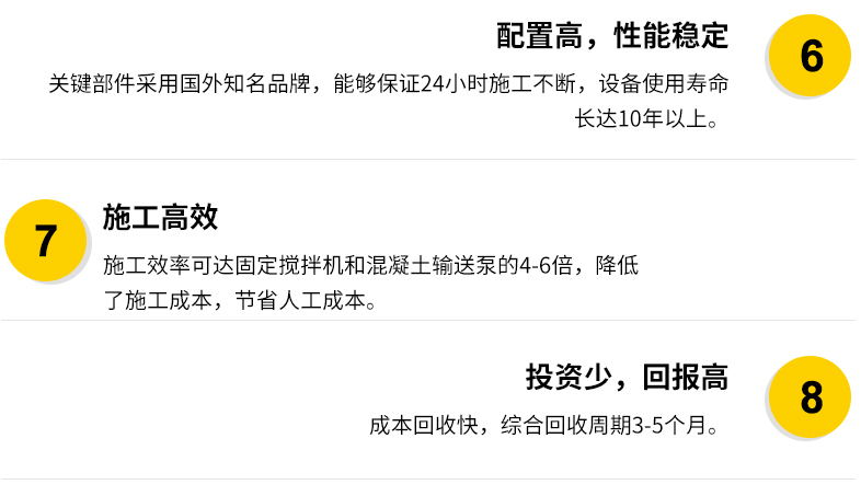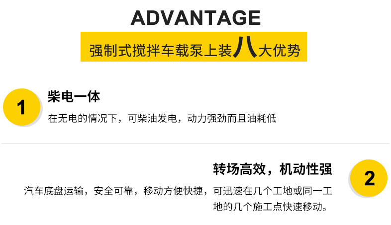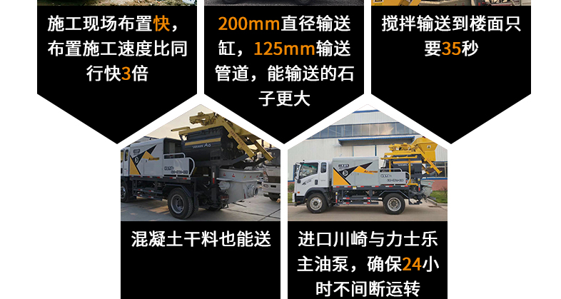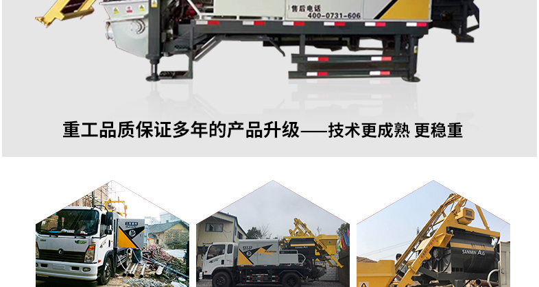 簡介:小型混凝土泵車:車載強制攪拌拖泵集拖泵與強制式攪拌機的優(yōu)越性于一體,作業(yè)范圍不受地域路況影響,縮短投資回報周期,具有簡化施工流程,節(jié)約勞動成本,降低勞動強度的優(yōu)勢。