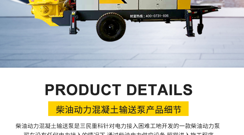 簡介:柴油動力混凝土輸送泵是三民重科新開發(fā)的一款柴油動力泵,主要是針對那些對于電力接入困難的工地而開發(fā)的,此種混凝土輸送泵可以再沒有任何電力接入的情況下,在工地能夠照常進(jìn)入施工程序。